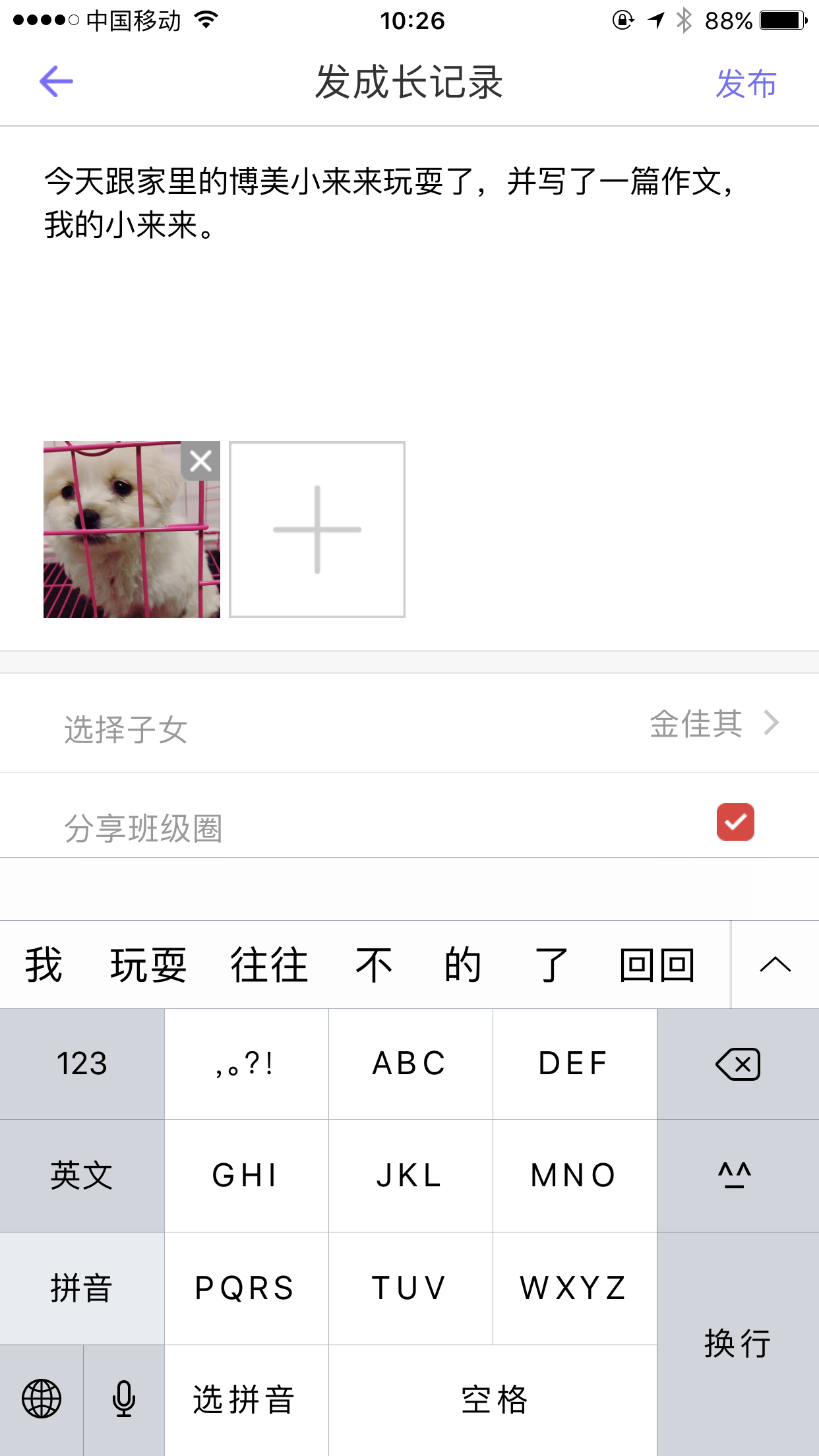 教师或者家长可以随时随地分享一些美好的事物分享到某个圈子里,可以选择是否分享到班级圈。