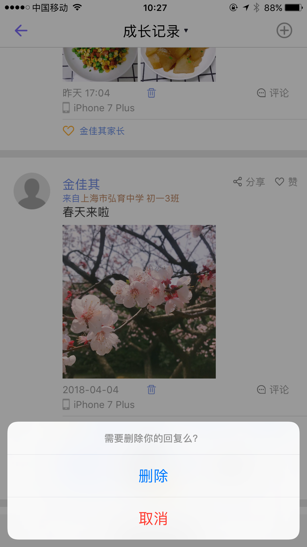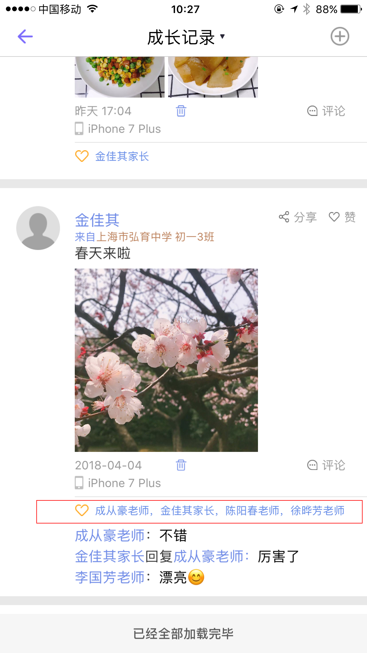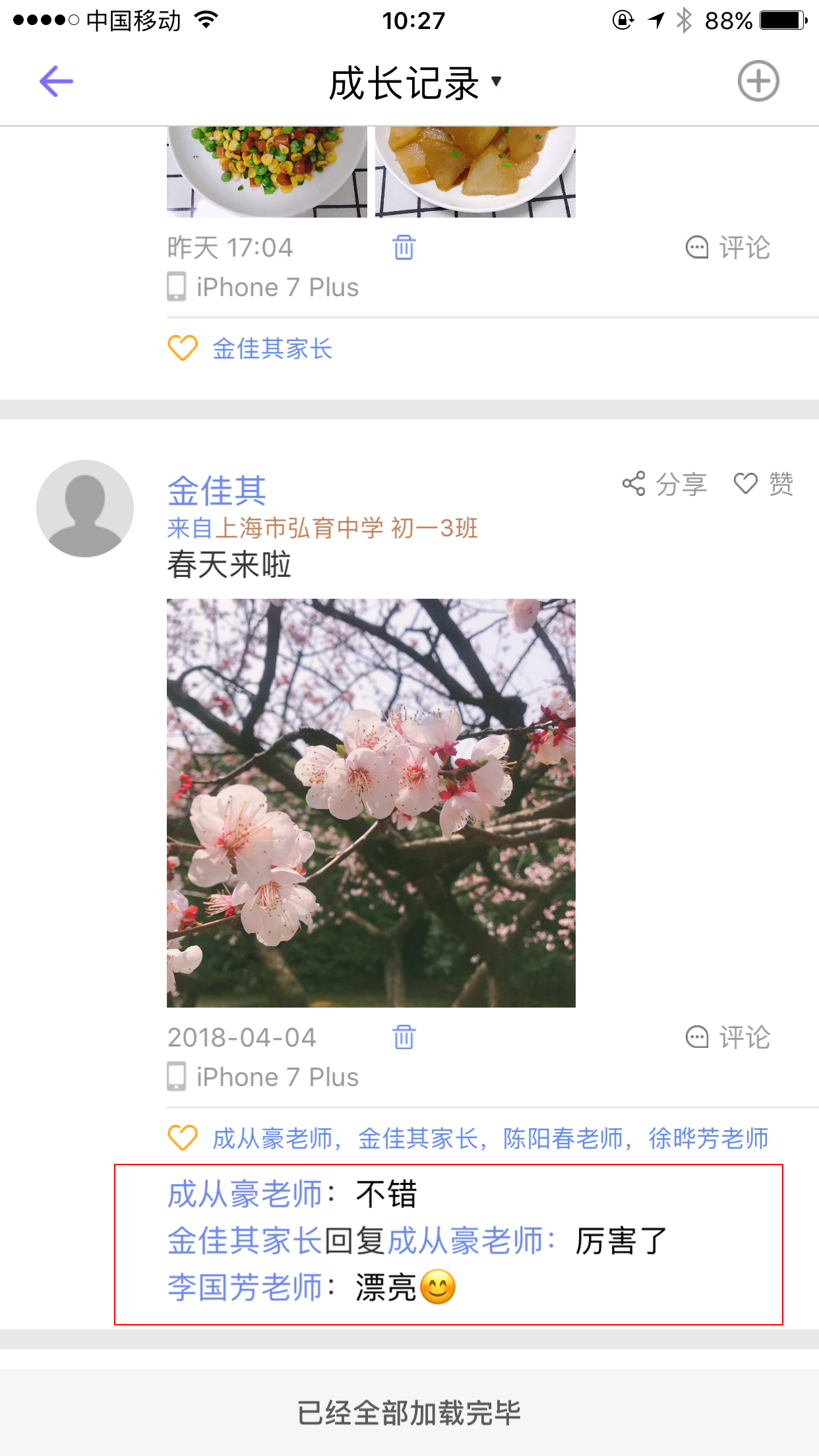 针对感兴趣的成长记录,我们可以进行评论,给予回复。