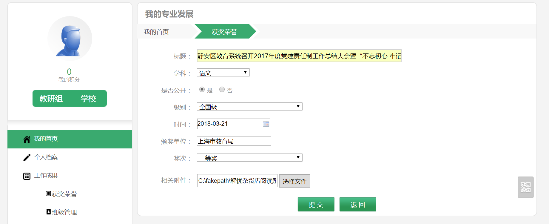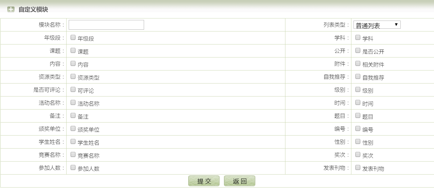 论文、教案、不同的资料需要老师们提交不同的内容,我们可以根据实际需要让老师自己选择定义栏目内容。