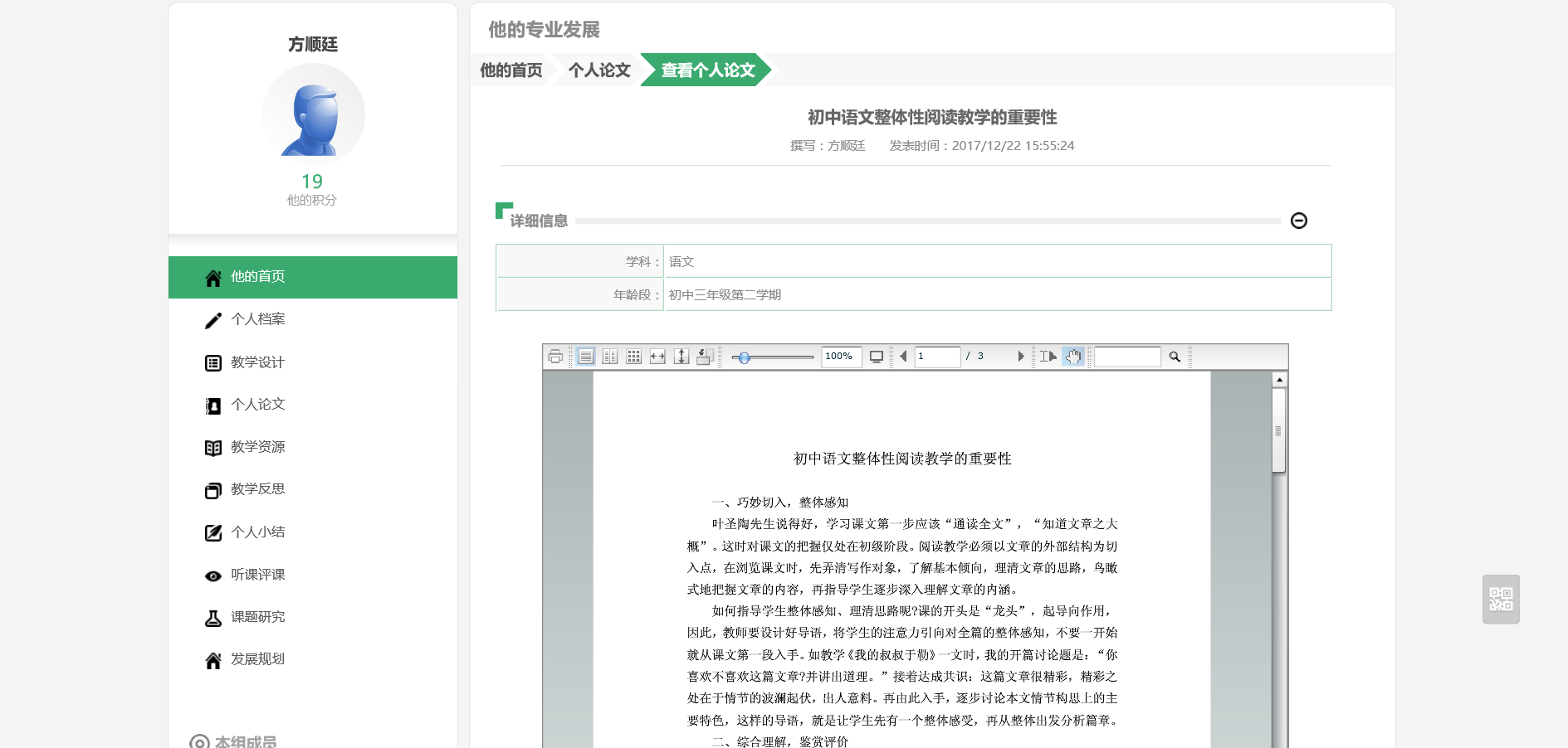 学校领导、老师可以通过界面,像文库一样去浏览老师的资料。