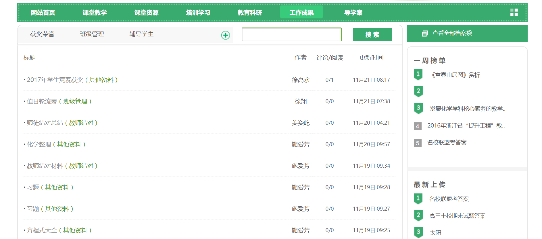 教师根据自己手中资料,对应上传到不同的栏目中。