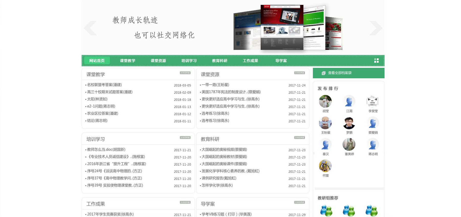 按照学校栏目,分类清晰的展示全校老师的发展资料。