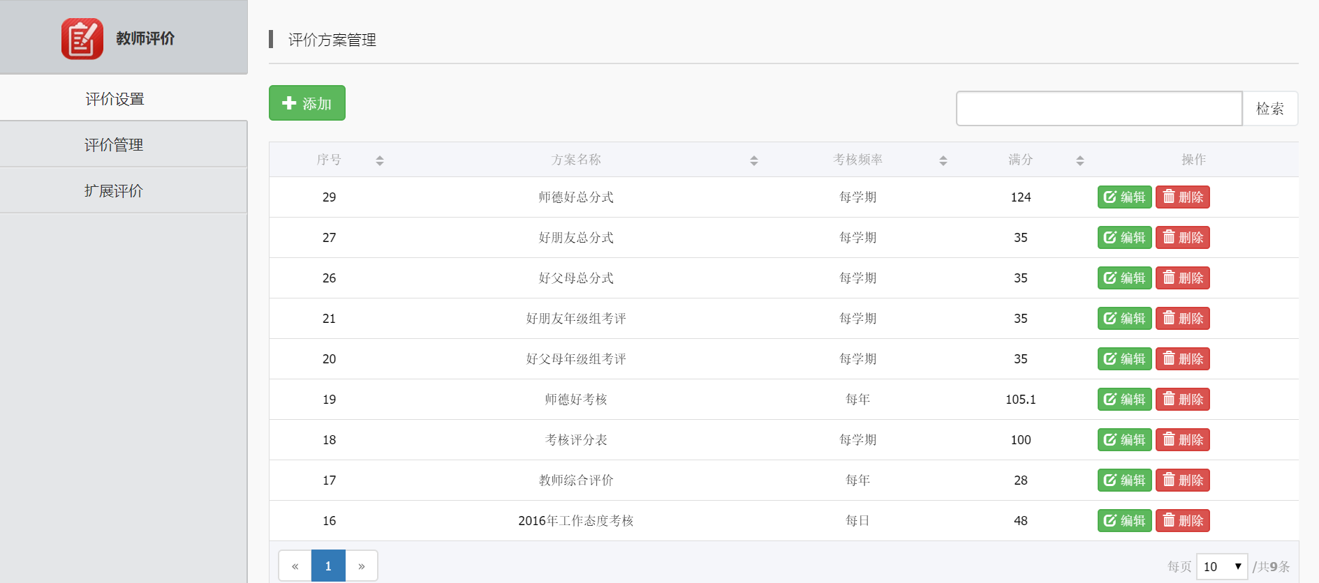 方案是评价的投票项目集,不同的方案测评教师不同的方面。方案需要管理员统一管理,包括初始化批量导入、单个修改或者单个删除。 每个评价维度都有一套自己的方案;不同学校可以设置不同的方案和不同的投票项目。