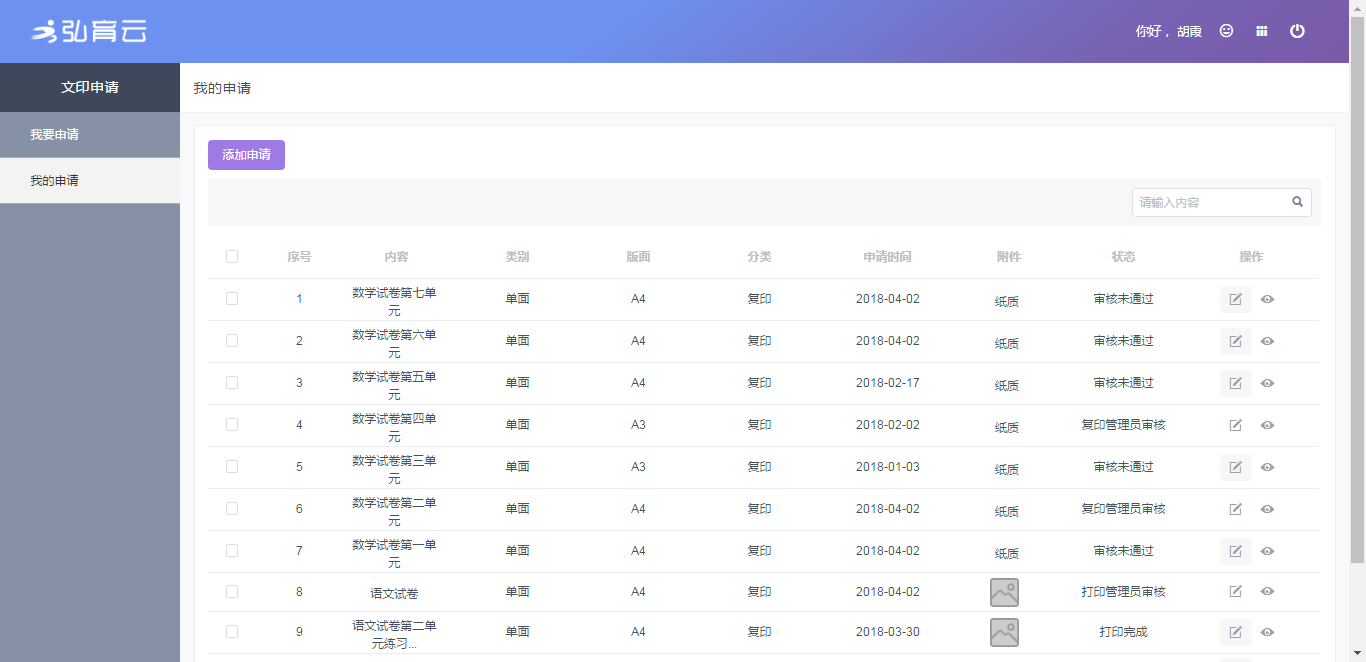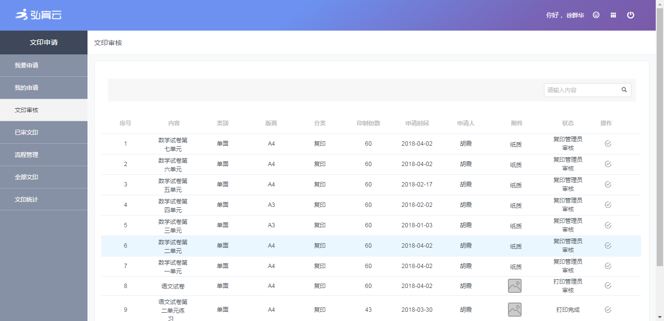 对学校教师申请的文印,可以查看,也可以审核通过或者是不通过。
