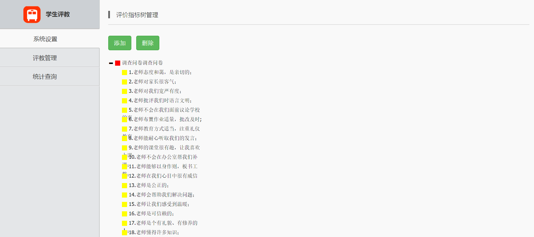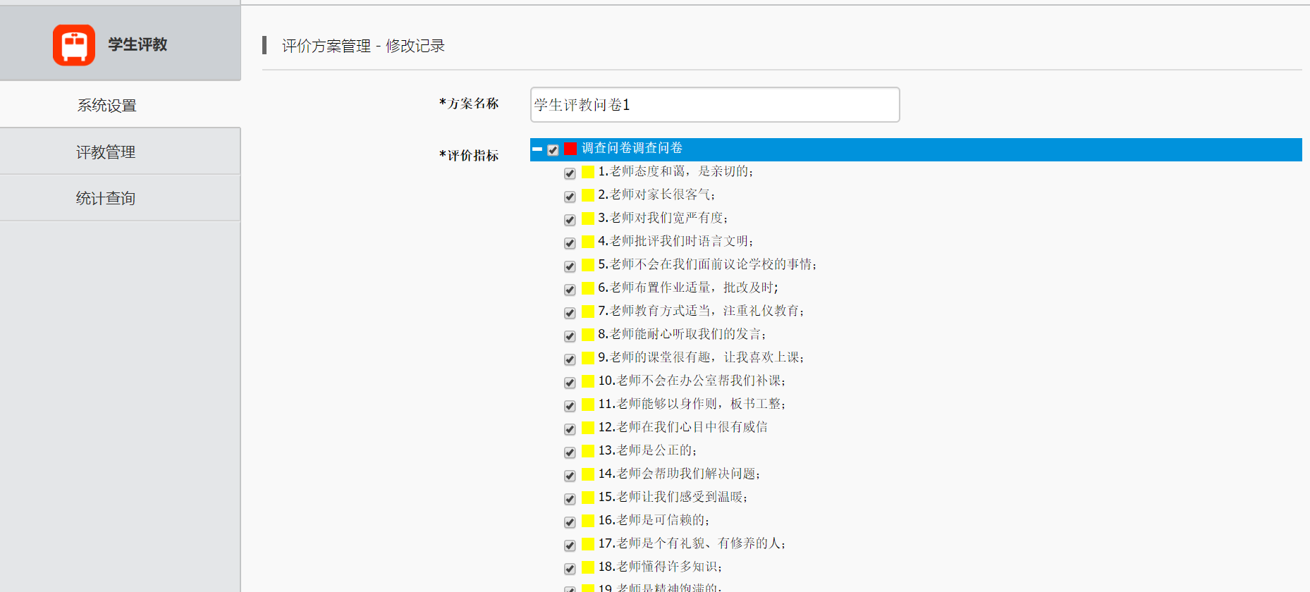 学校可以根据自己实际情况,添加自己需要学生评价教师的指标。