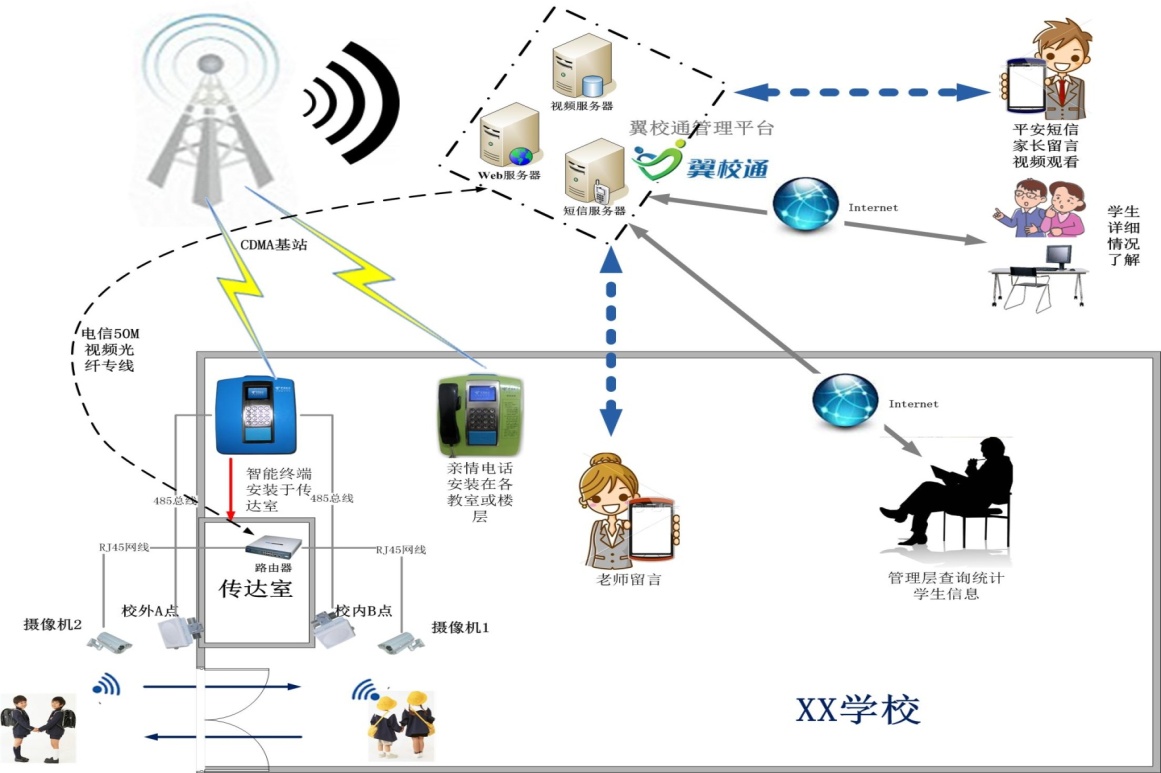 采用4G设备上报考勤信息,支持短消息形式即时将孩子到校或离校信息发至家长的APP中,家长可以通过视频更加准确的查看孩子出入的场景。