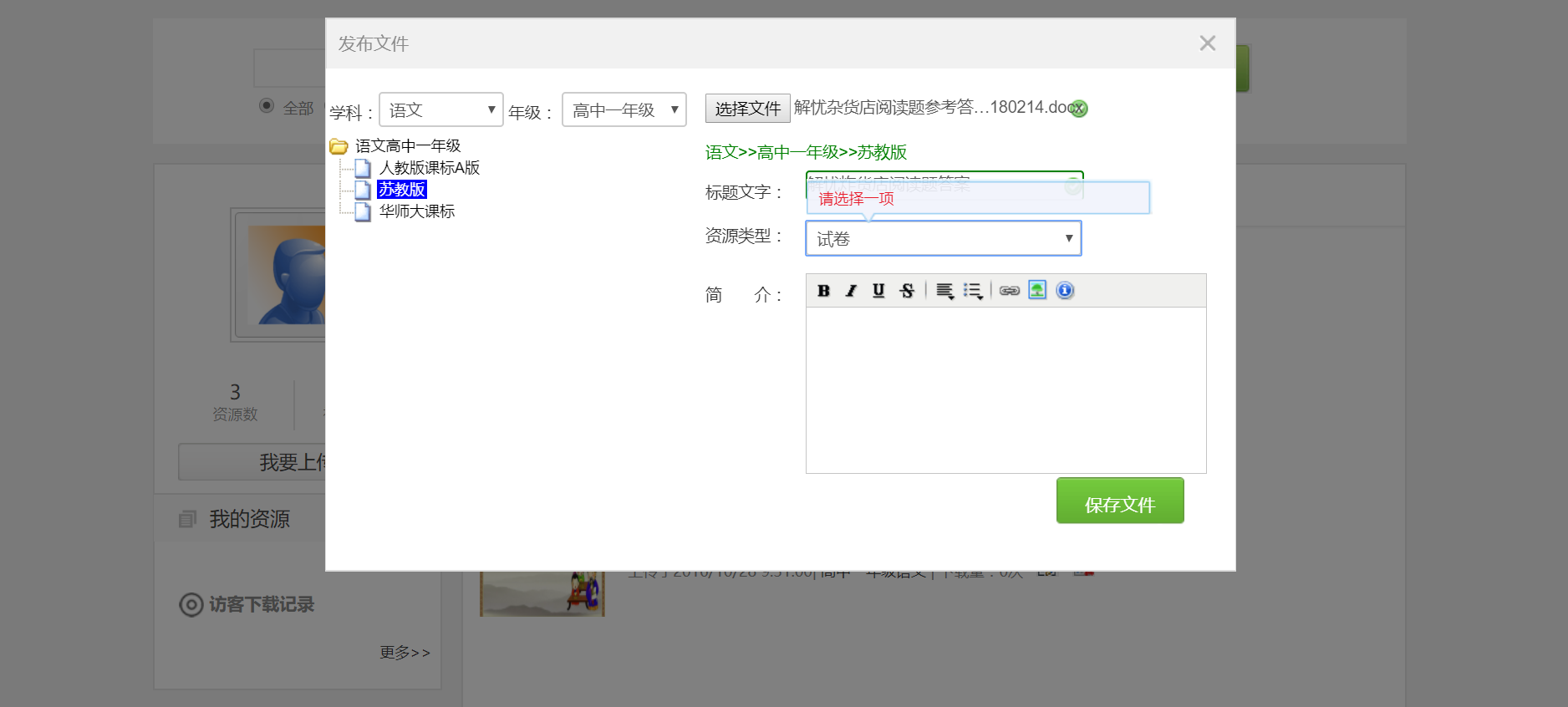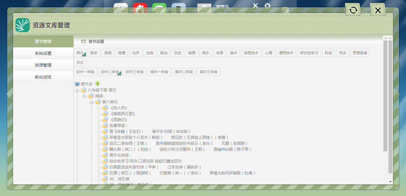 资源编目设置,后台老师可以根据自己需要,添加相关资源编目。