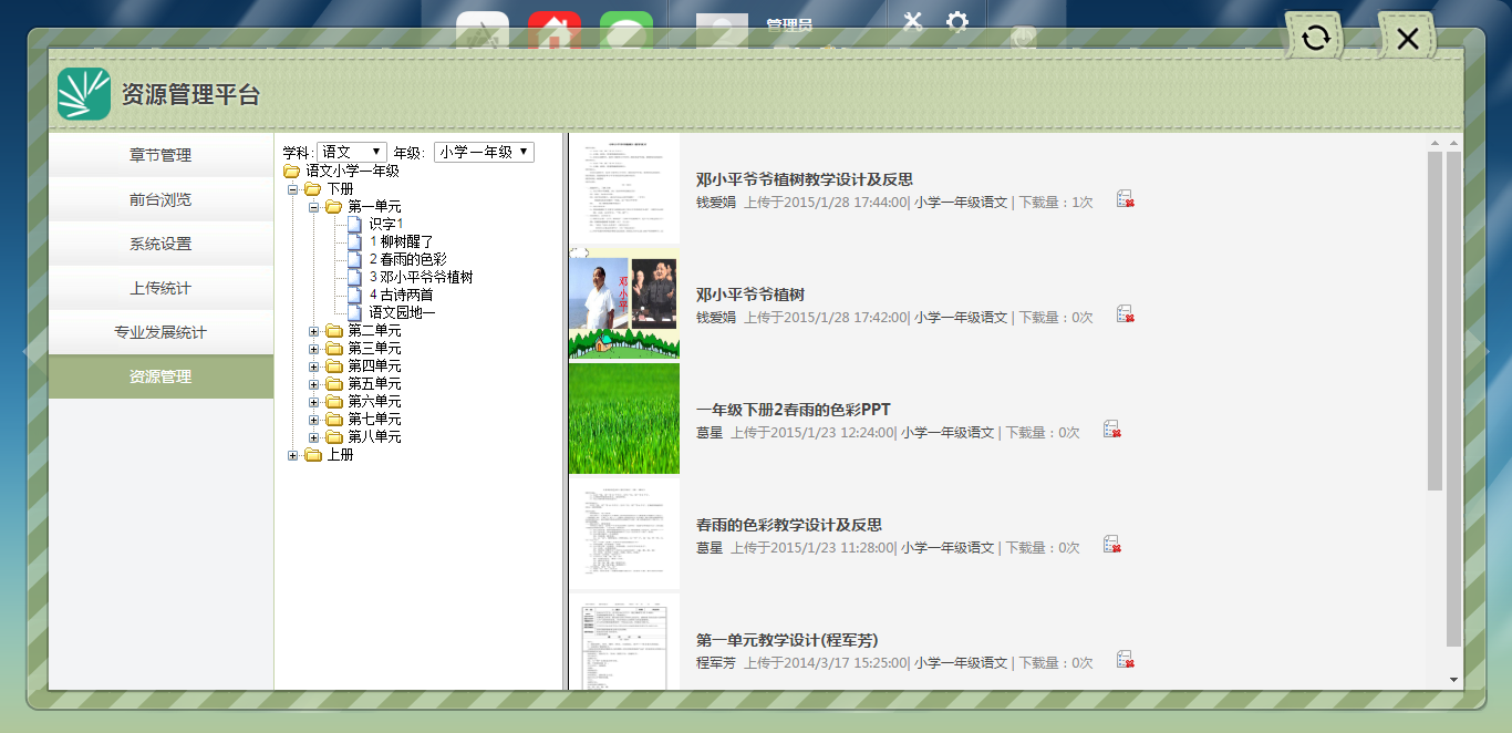 资源管理,后台管理员可以通过目录树,详细查看各类资源情况,进行汇总。
